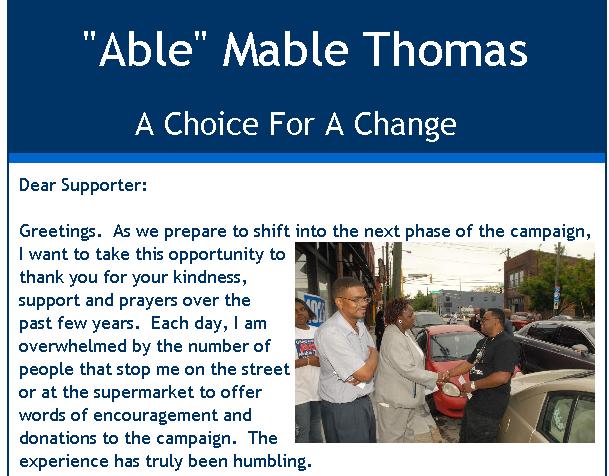 She becomes the second serious challenger to Lewis, the first being Markel Hutchins, a community activist and minister. This marks the second time Thomas has challenged Lewis.Representative Thomas lost badly in 1992 and won less than 25% of the vote. Able Mabel is a serious politician having served in both the Georgia House of Representatives and the Atlanta City Council. She is also a progressive legislator having twice passed legislation to increase Georgia’s homestead exemption to protect low income and elderly people from losing their homes. She, like Hutchins, frames the contest in generational terms, “I believe that, at the end of the day, that my opponent is not only beatable, but my opponent should — right now — just get out of the race and let a new generation come forth.”