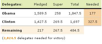 Its the math. Obama might be able to win it with pledged delegates if he gets a big win in Oregon. I also agree that Bill Richardson, or "Judas" as he's known in Clinton quarters, makes sense as the VP. He's likeable, shores up Latino support and he puts New Mexico in the win column. That would be a real change ticket. I think Hillary has run a disgraceful campaign which should disqualify her for the VP spot. Not to mention that it would not be unlike having Lady Macbeth as your VP, always with helpful advice I'm sure. But never say never in politics. My other VP pick is Sherrod Brown, the new senator from Ohio.
